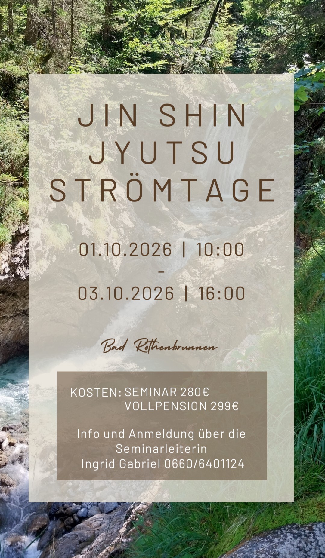 Wir strömen uns gegenseitig unter Anleitungund finden mit Hilfe von Jin Shin Jyutsu Zugang zu unserer Kraft und können auftanken. Harmonie wird spürbar. Der kraftvolle Platz von Bad Rothenbrunnen und ihrer Heilquelle, der tosende Matonabach und die Abgeschiedenheit des Gadentales bilden den Rahmen dazu.