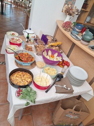 Doris Grellmann informierte uns, dass am 3. Oktober 2026 der Vereinstag Österreich in Enns stattfinden wird. Da können wir die Früchte der Vernetzung schon zeigen und als Team Doris bei der Organisation unterstützen. Beim gemeinsamen Mittagessen – die Teilnehmer hatten köstliche Speisen mitgebracht – gingen die Themen in Vertiefung. Nach Kaffee und Kuchen genossen wir die übliche Strömrunde.